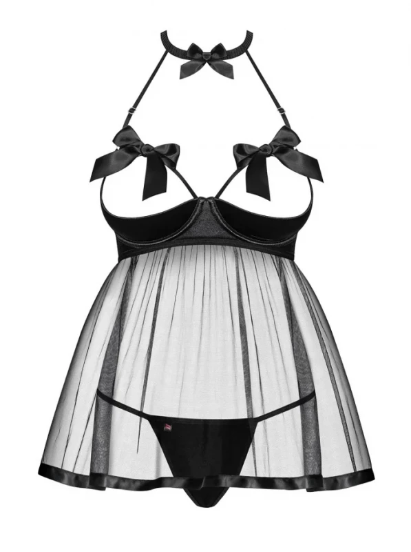 Пеньюар с открытым бюстом "Obsessive Delishya" черный, L/XL